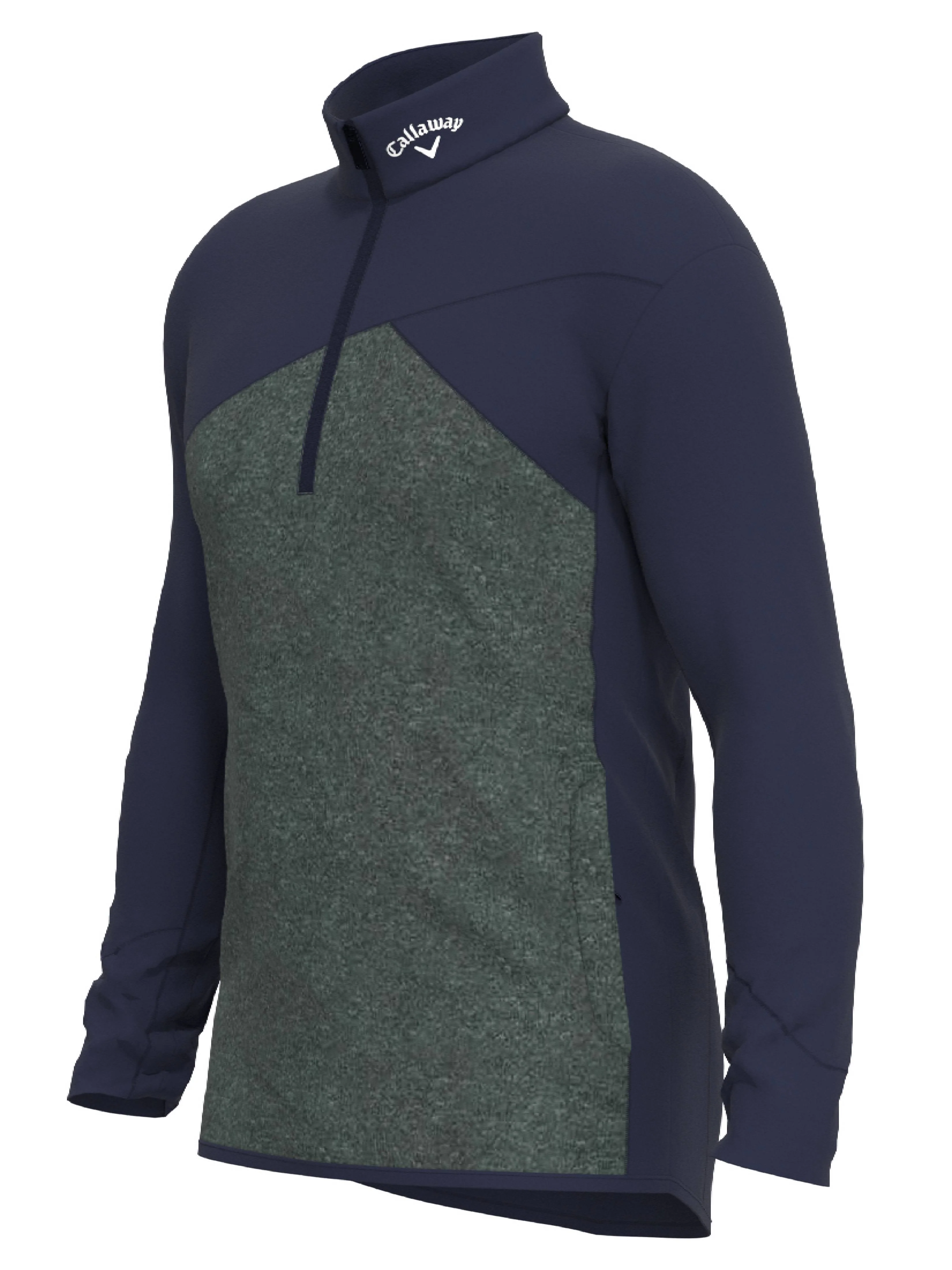 Layer up without restriction in this ultra-lightweight Weather Series™ golf jacket from Callaway. Its breathable jersey fabrication is enhanced with Aquapel™ technology, a fast-drying, water-repellent finish that resists water and spills. A mock neck and hand pockets offer extra protection against the chill. Stylish and functional, the golf pullover features a sleek two-tone front and a 1/4 zip for easy removal if the weather warms up.